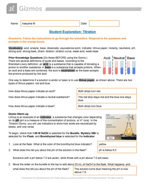 Download Explore Learning Student Exploration Titration Answers Sheet Reader